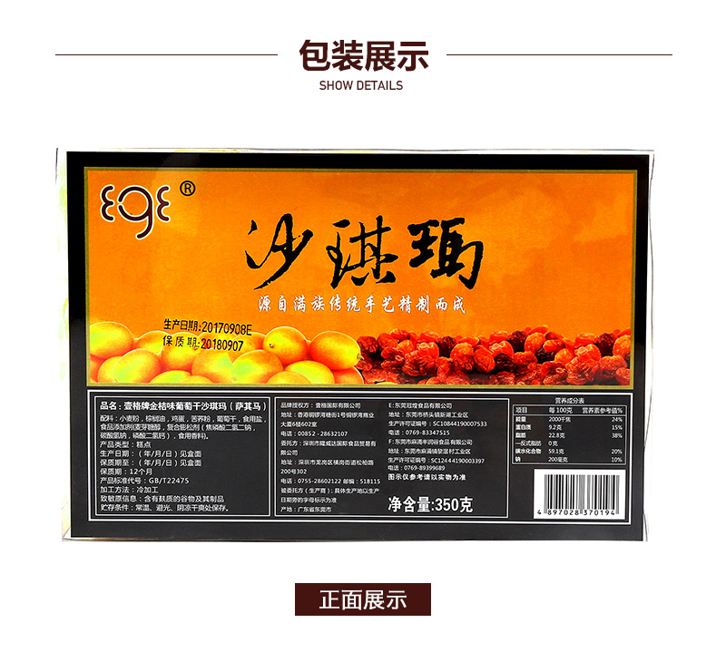 壹格牌金桔味葡萄干沙琪瑪-350g